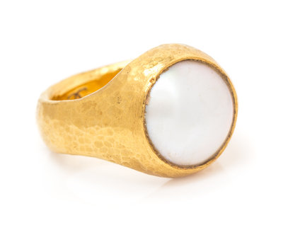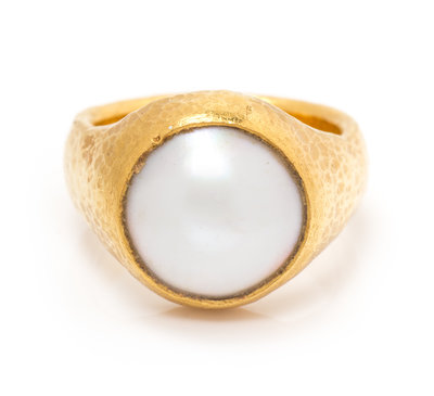 A 22 Karat Yellow Gold and Mabe Pearl Ring, Gurhan,