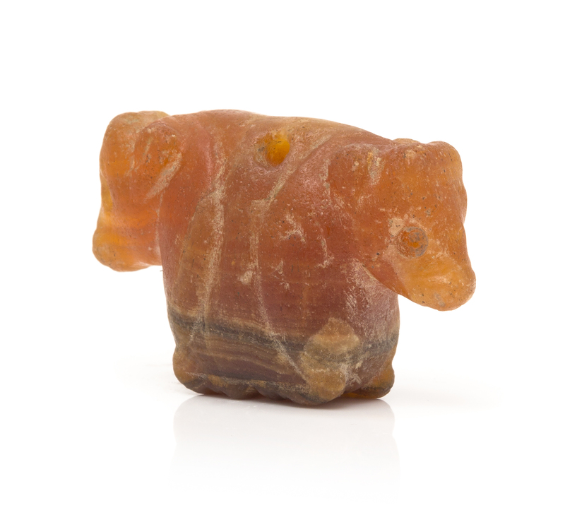 A Possibly Ancient Carnelian Double Calf Carved Bead,