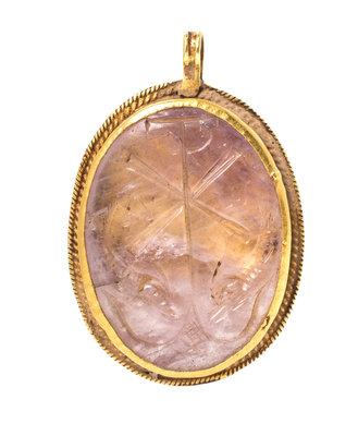 An Early Christian Yellow Gold and Rock Crystal Intaglio Pendant,