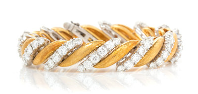 A Platinum, 18 Karat Yellow Gold and Diamond Bracelet, Ruser,