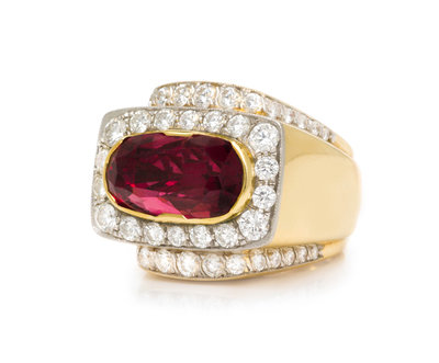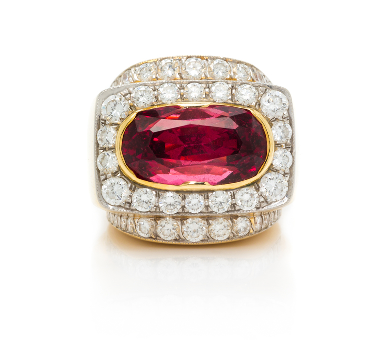 A Bicolor Gold, Burmese Spinel and Diamond Ring,