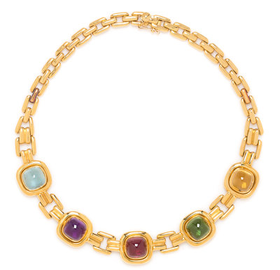 An 18 Karat Yellow Gold and Multigem Necklace,
