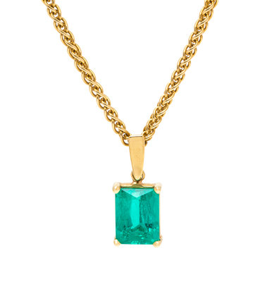 containing one octagonal mixed cut emerald measuring approximately 9.12 x 6.80 x 5.78 mm, suspended from a twisted link chain.