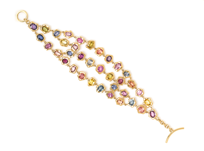 An 18 Karat Yellow Gold and Multicolor Sapphire Bracelet,