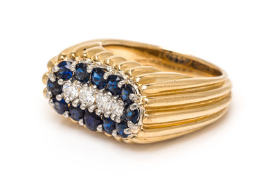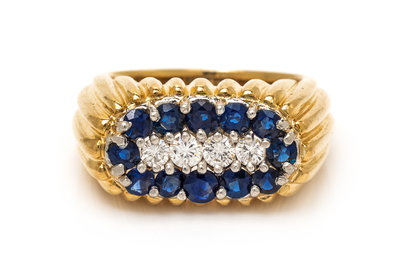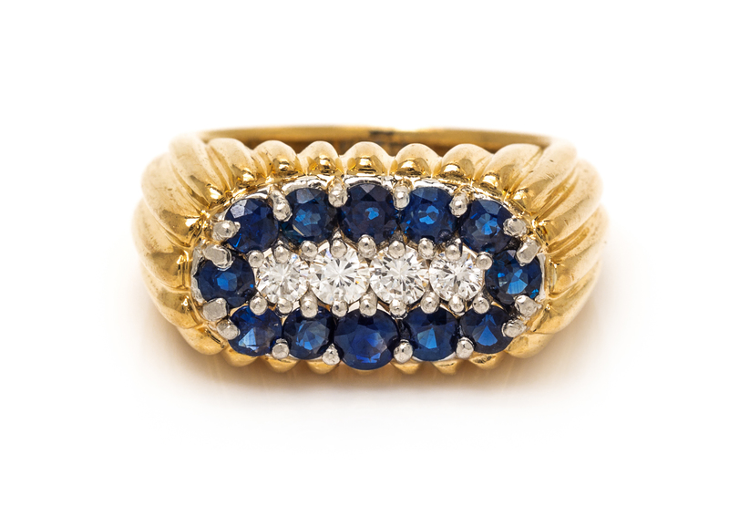 An 18 Karat Yellow Gold, Platinum, Sapphire and Diamond Band, Oscar Heyman Brothers,