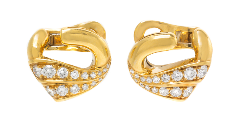 A Pair of 18 Karat Yellow Gold and Diamond Earclips, Bulgari,