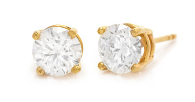 A Pair of Yellow Gold and Diamond Stud Earrings, Hearts on Fire,