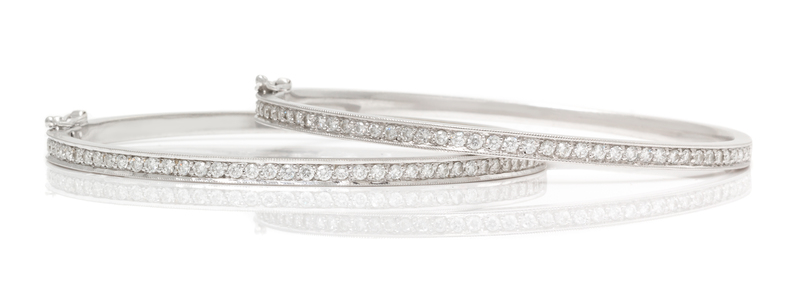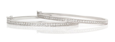 A Pair of 18 Karat White Gold and Diamond Bangle Bracelets,