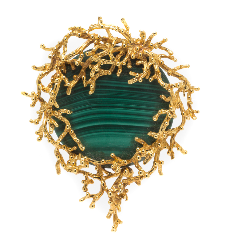 An 18 Karat Yellow Gold and Malachite Brooch, Grosse,