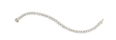 containing 38 round brilliant cut diamonds weighing approximately 6.08 carats total.Stamp: 14K.