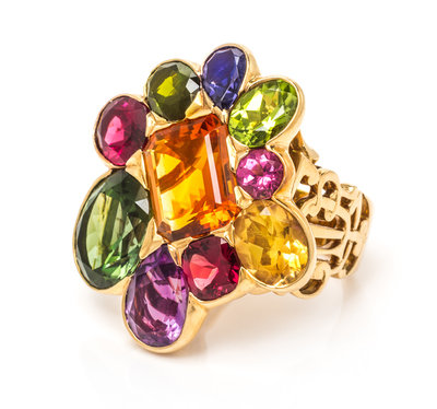 An 18 Karat Yellow Gold and Multigem Ring, Christian Dior, France,