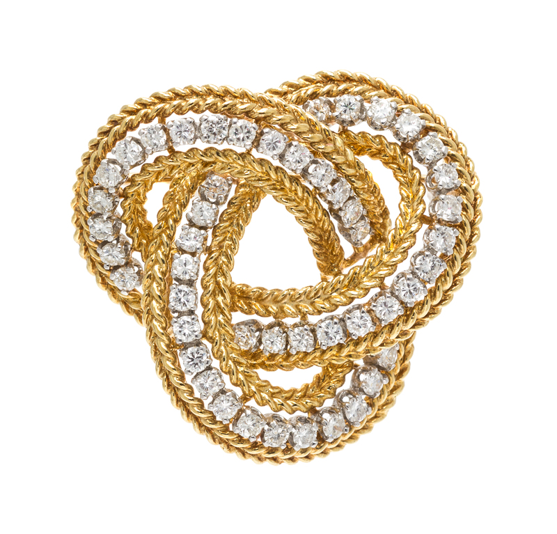 A Yellow Gold, Platinum and Diamond Knot Motif Brooch, French,