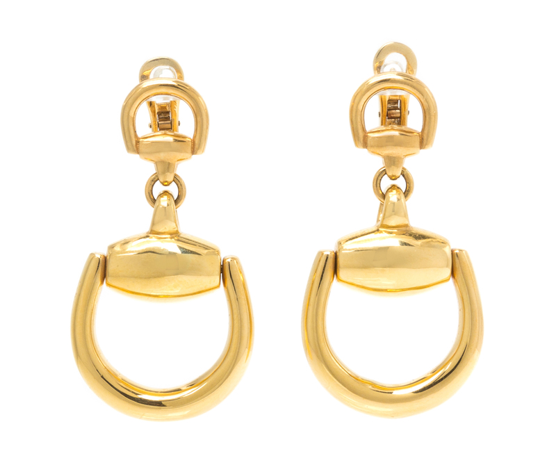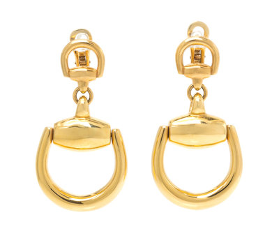 A Pair of 18 Karat Yellow Gold Horsebit Earclips, Gucci,