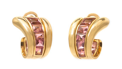 A Pair of 18 Karat Rose Gold and Pink Tourmaline Earclips, Verdura,