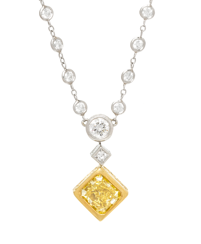 A Platinum, 18 Karat Yellow Gold, Fancy Vivid Yellow Diamond and Diamond Necklace, Michael Beaudry,