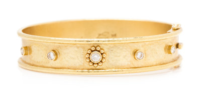 An 18 Karat Yellow Gold and Diamond Bangle Bracelet, Elizabeth Locke,