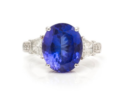 An 18 Karat White Gold, Tanzanite and Diamond Ring,