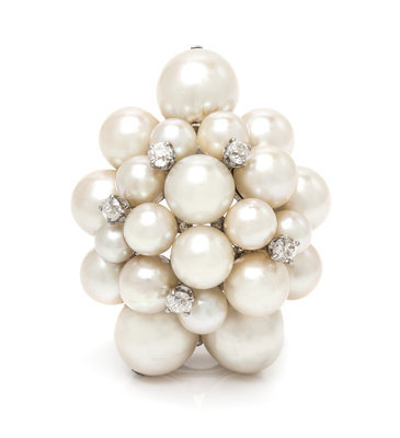 A White Gold, Cutured Pearl and Diamond Brooch, Seaman Schepps,