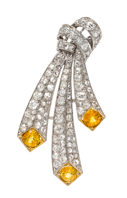 An Art Deco Platinum, Yellow Sapphire and Diamond Brooch,
