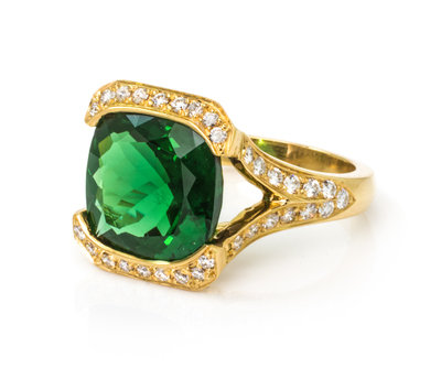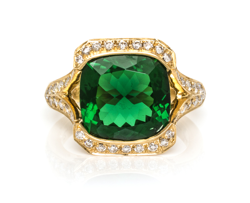 An 18 Karat Yellow Gold, Chrome Tourmaline and Diamond Ring, Kurt Wayne,