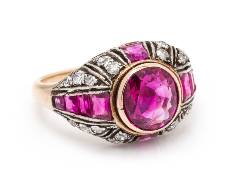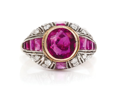 A Silver Topped Rose Gold, Ruby and Diamond Ring,