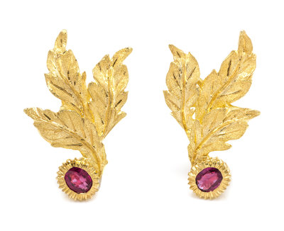 A Pair of Yellow Gold and Ruby Earclips, Buccellati,