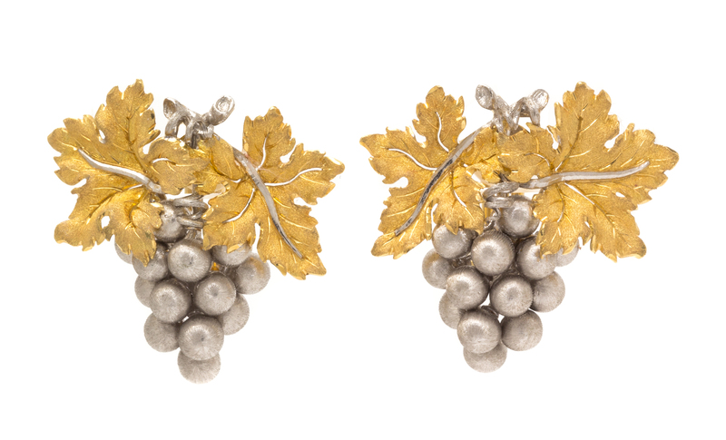 consisting of white gold textured grapes and vines together with yellow gold leaves.Hand inscribed: Q2906 ITALY 18K BUCCELLATI.