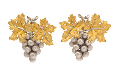 A Pair of 18 Karat Bicolor Gold Grape Motif Earclips, Buccellati,