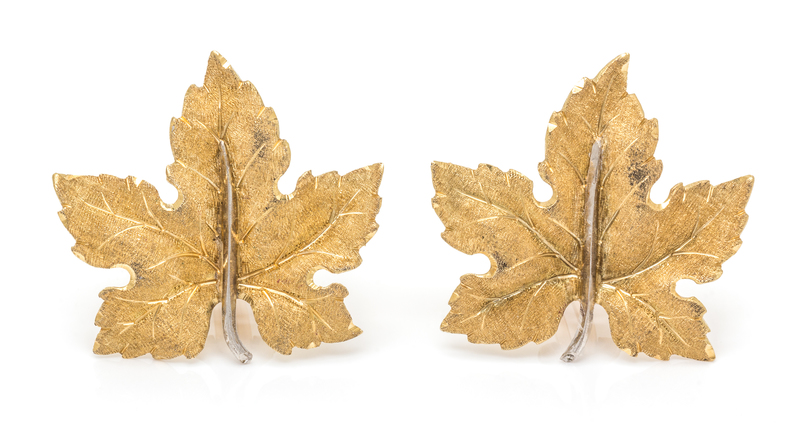 A Pair of 18 Karat Bicolor Gold Leaf Motif Earclips, M. Buccellati,