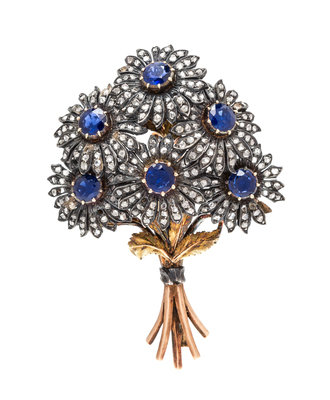 A Silver Topped Gold, Sapphire and Diamond Floral Motif Brooch, Buccellati,