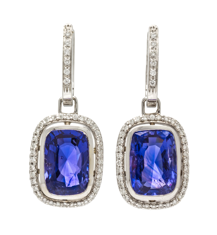 A Pair of 18 Karat White Gold, Color Change Sapphire and Diamond Pendant Earrings, Raima,