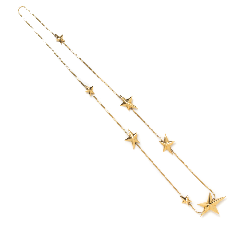 composed of seven sculpted stars measuring between approximately 18.23 mm and 44.00 mm in length joined at random intervals throughout the serpent link chain.Accompanied by a copy of a Bergdorf Goodman receipt dated May 20, 1986, noting the purchase of the necklace, style number AN10.