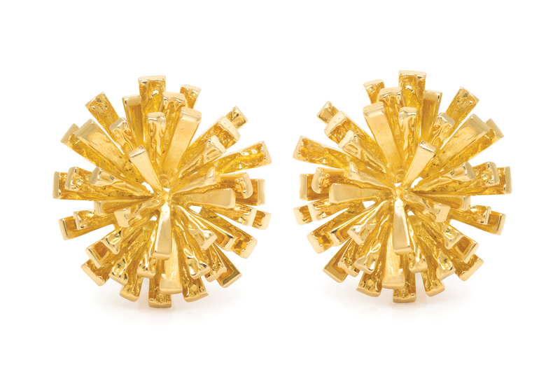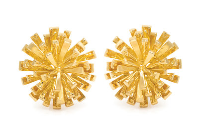 A Pair of 18 Karat Yellow Gold Starburst Earclips, Tiffany & Co., Circa 1960,