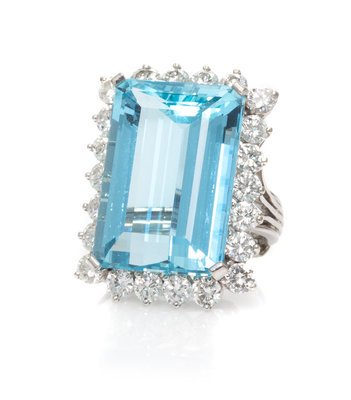 A 14 Karat White Gold, Aquamarine and Diamond Ring,
