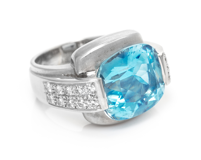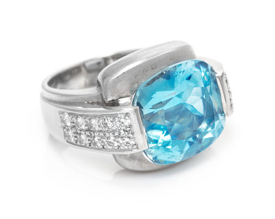 An 18 Karat White Gold, Aquamarine and Diamond Ring, Marlene Stowe,