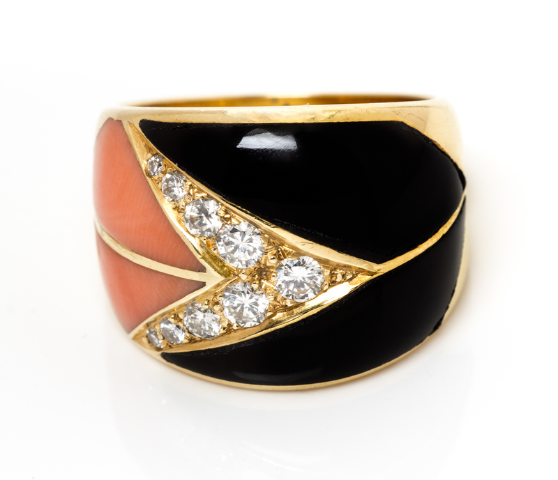 An 18 Karat Yellow Gold, Diamond, Onyx, and Coral Ring, Cartier,