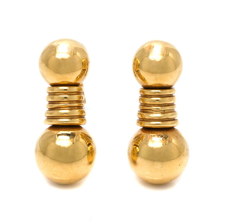 consisting of two ball forms suspended by a row of concentric rings.Stamp: BOUCHERON 750 (French eagle assay and makers mark) A837X1242.