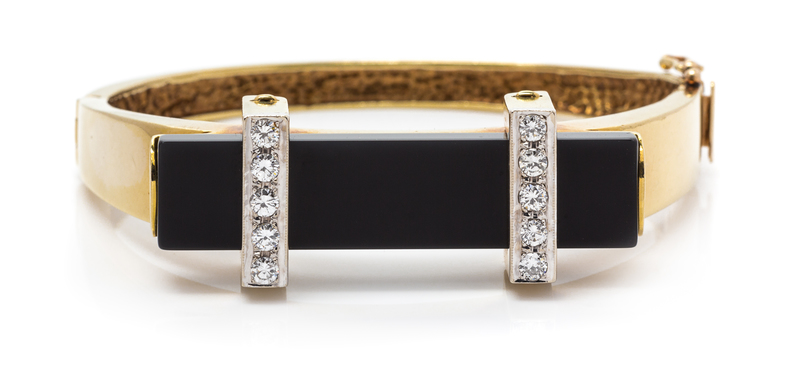 A Yellow Gold, Diamond and Onyx Bangle Bracelet,