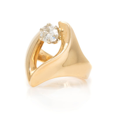 A 14 Karat Yellow Gold and Diamond Ring,