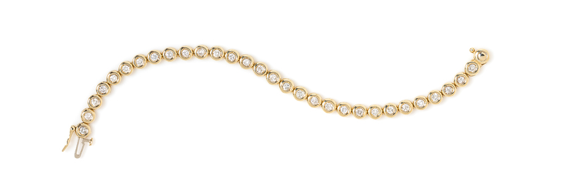 A 14 Karat Yellow Gold and Diamond Line Bracelet,