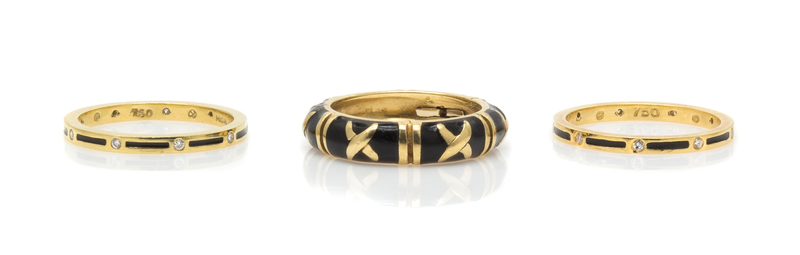 A Collection of 18 Karat Yellow Gold, Diamond and Enamel Rings, Hidalgo,