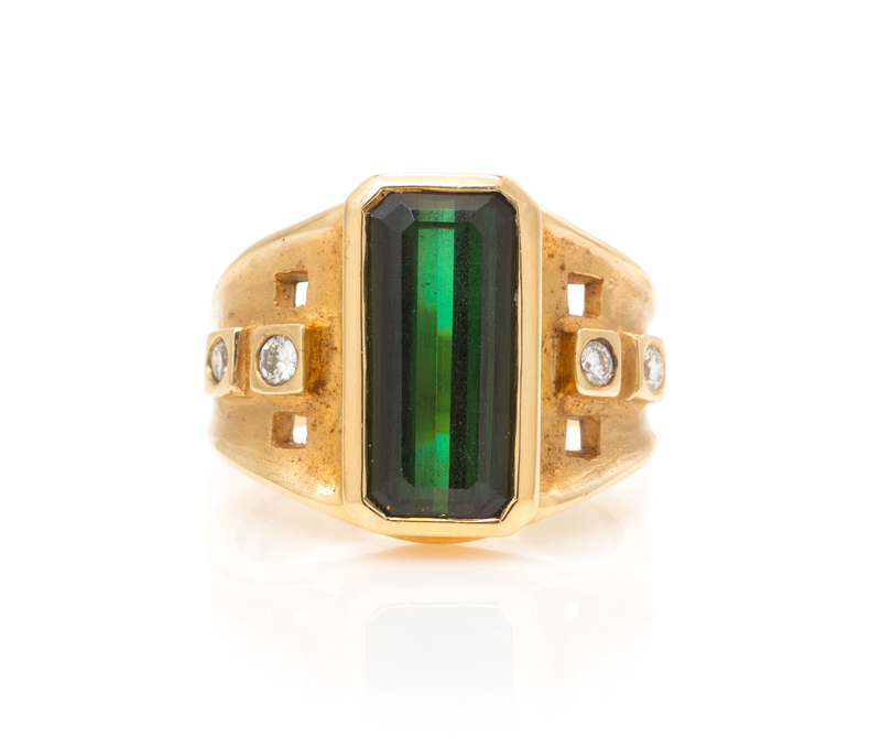 A Yellow Gold, Tourmaline and Diamond Ring, Eve Alfille,