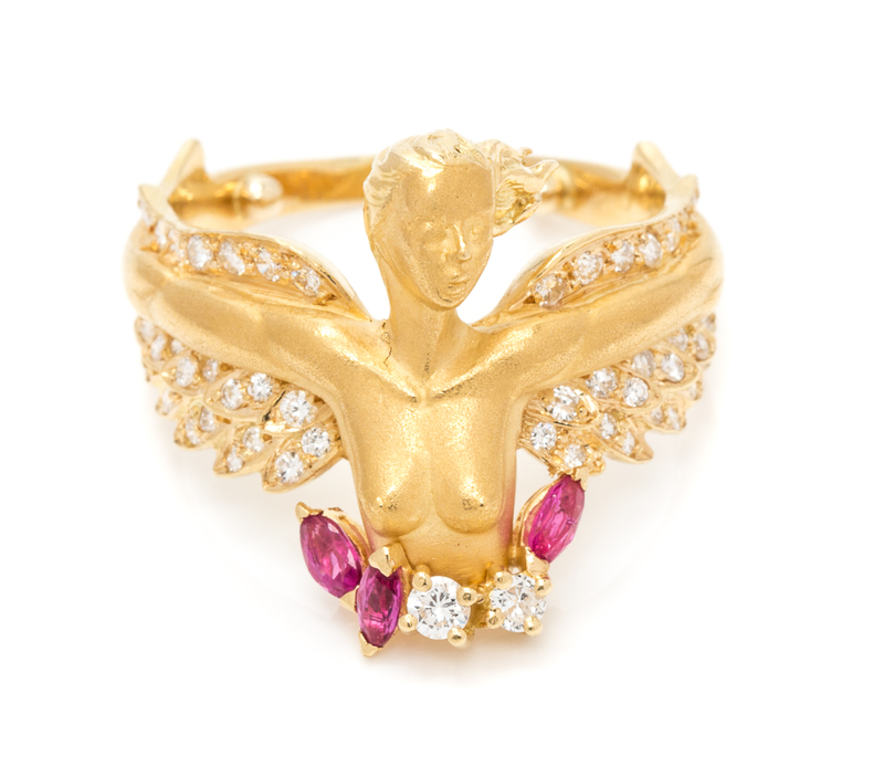 A Yellow Gold, Diamond and Ruby Angelitos Ring, Carrera y Carrera,