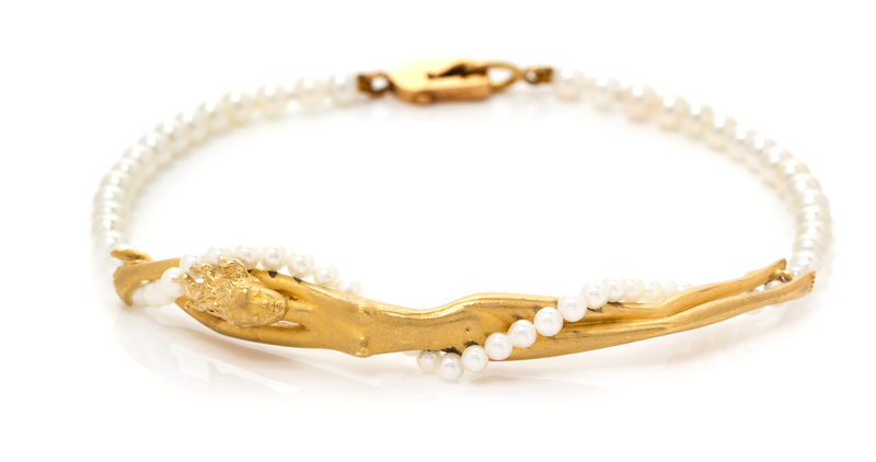 consisting of a reclining nude figure and containing 65 round cultured pearls measuring approximately 2.30-3.30 mm in diameter.Stamp: Carrera y Carrera 750 39857.
