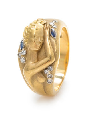 An 18 Karat Yellow Gold, Diamond and Sapphire Ring, Carrera y Carrera,