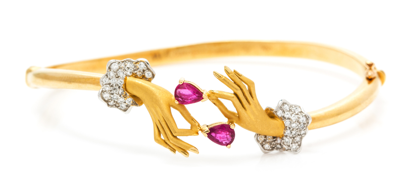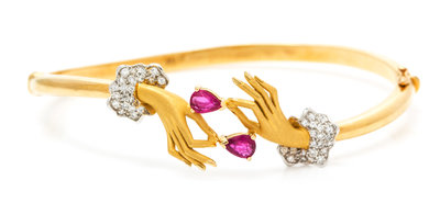 An 18 Karat Yellow Gold, Diamond and Ruby Hand Motif Bracelet, Carrera y Carrera,