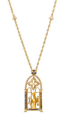 An 18 Karat Yellow Gold, Diamond, and Sapphire Window Gazer Pendant, Carrera y Carrera,