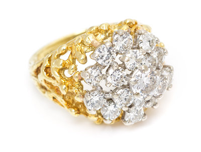 containing one round brilliant cut diamond weighing approximately 0.52 carat and 16 round brilliant cut diamonds weighing approximately 2.32 carats total.Stamp: 18K.