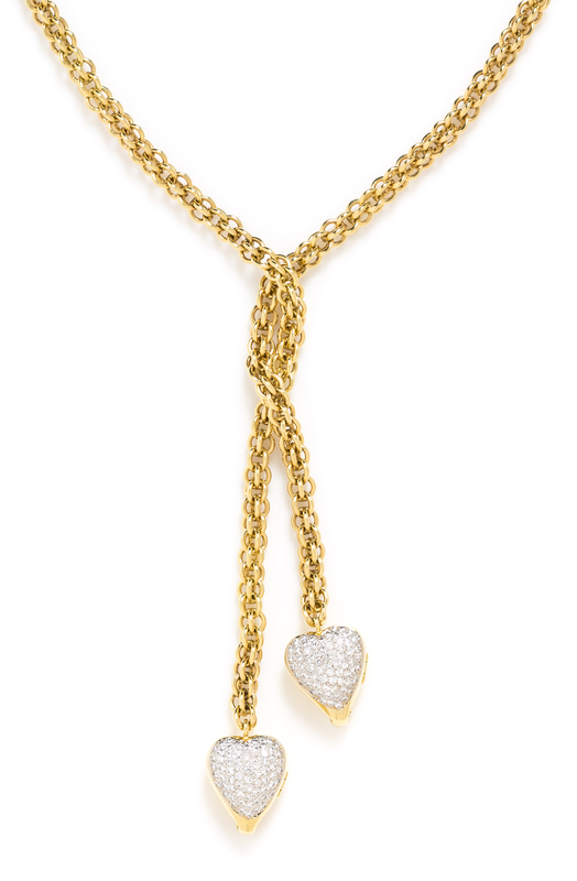 A Yellow Gold and Diamond Heart Motif Lariat Necklace,