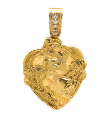 An 18 Karat Yellow Gold and Diamond Heart Shape Locket,